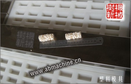由我公司研发的全自动米花糖、米通成型机,全国的机械柔压方式,使成型更规格,更美观;